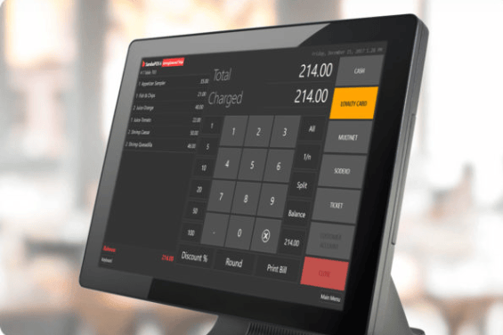 Settle bills via multiple payment options such as cash, check, debit/credit card, gift/loyalty card, or customer account. Apply discounts to entire bills, single menu items, or a group of menu items. Define various tax types